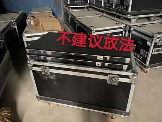 正確做法:豎放且燈面朝外(如下圖),如實(shí)需堆放,則箱體面對(duì)面背靠背擺放