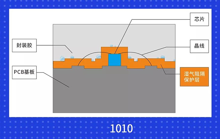 迷你MINILED1010著重從工藝方面隔離濕氣,一方面加強內在“防護”,采用迷你獨立開發的全新封裝專利工藝,在封裝前在PCB、芯片、晶線表面涂膜一層濕氣阻隔保護層,阻隔濕氣滲入損壞器件,保護燈珠內部各個器件不受濕氣影響;