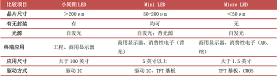 以上三種顯示技術均基于微小的LED晶體顆粒作為像素發光點,區別在于相鄰燈珠點間距和芯片尺寸不同。Mini LED和Micro LED在小間距LED的基礎上進一步縮小了燈珠間距和芯片尺寸,是未來顯示技術的主流趨勢和發展方向。