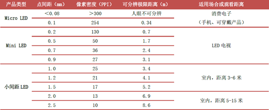 由于芯片尺寸存在差異,各種顯示技術應用領域會有所不同,更小的像素間距意味著更近的觀看距離。