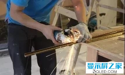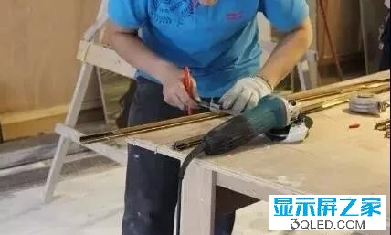 1、根據圖紙計算好全部工程的用量,對于小尺寸的屏幕,一次成型的材料必須保證凈尺寸的余量,一般控制在0.5cm以內。如果顯示屏尺寸比較大,可以將材料長度多計算5~10cm的余量,包邊的拼接處直接交叉預埋在底部,這樣的好處是方便凈尺寸的余量精確保障。