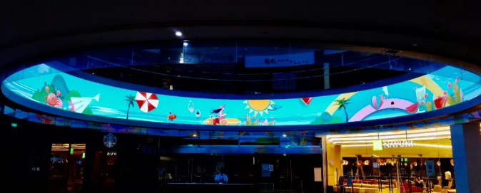 武漢某大型商場大廳有一塊分辨率為13760*440的環形led屏,根據客戶要求,采用了迷你LVP609 4K設備帶載,對led屏完成GenLock 同步級聯拼接,畫面流程無錯位,實現了超長的環形led屏的點對點顯示,讓整個商場頂級視效得到完美的呈現。