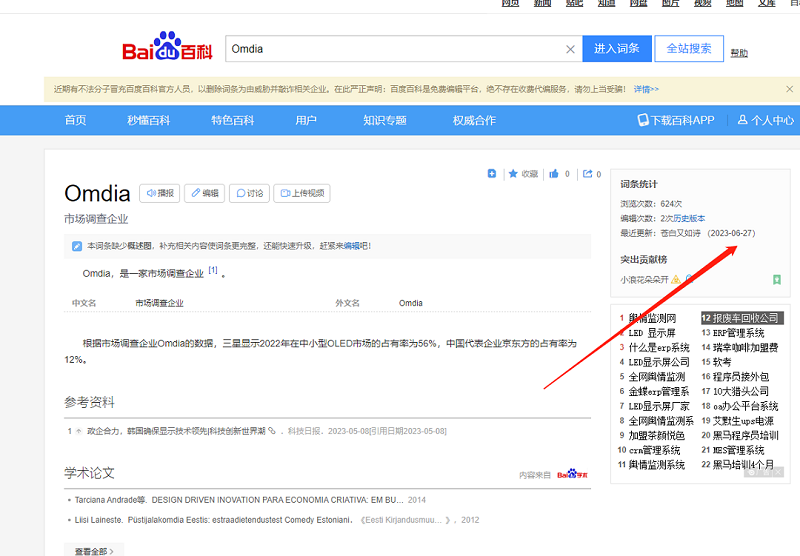 Omdia百度百科創建時間如下