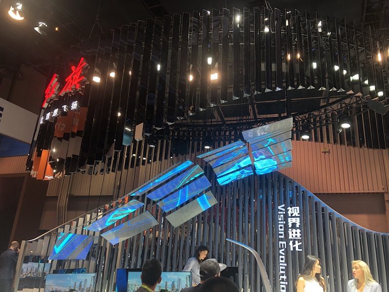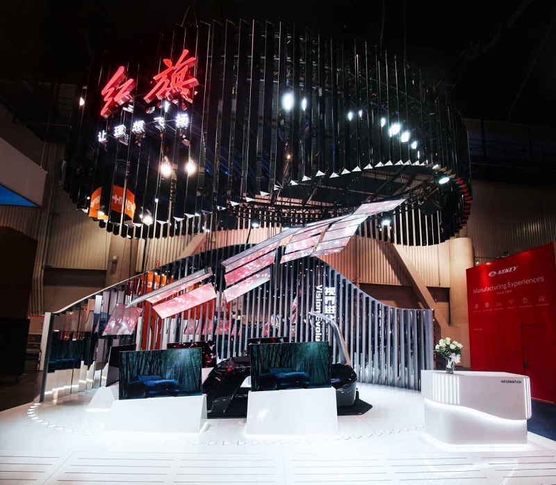 據(jù)了解,本項目采用迷你小間距P6.5系列貼膜屏,共有21塊高端定制貼膜屏組成了精彩現(xiàn)場,屏幕“漂浮”在空中,十分搶眼,看點(diǎn)十足。本次紅旗與迷你科技強(qiáng)強(qiáng)聯(lián)合,“汽車+互聯(lián)網(wǎng)”合作共贏,為展會現(xiàn)場強(qiáng)勢吸粉,展位人頭攢動,大量客源涌入,給參展嘉賓帶來完美體驗。
