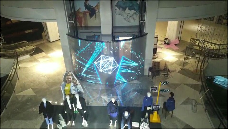 透明屏特有的可裁剪可彎曲特性,在眾多復雜場景皆可應用,憑借著其輕薄、高通透性、安裝簡易、節能環保等多處優點廣泛受到市場的青睞,其次,利用互聯網操控播放方式,遠程操控播放等其他操控方式,使無框