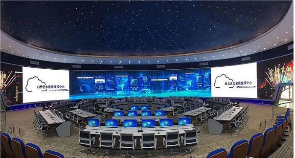 今年初期,貴陽(yáng)白云區(qū)“數(shù)治白云”大數(shù)據(jù)城市指揮中心正式建成投入使用。該中心采用一塊360度環(huán)形巨幕,屏幕面積高達(dá)400平方米,由國(guó)內(nèi)小間距LED顯示領(lǐng)先企業(yè)迷你光電提供。作為一個(gè)“區(qū)”級(jí)數(shù)據(jù)指揮中心,這塊屏幕的“規(guī)模”堪稱全球標(biāo)桿。