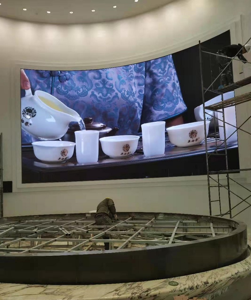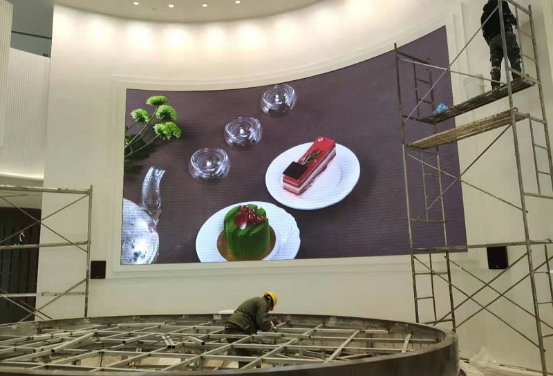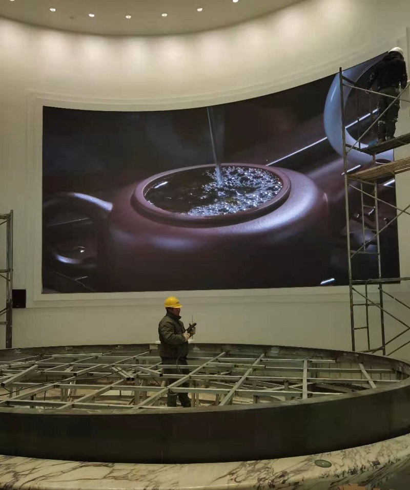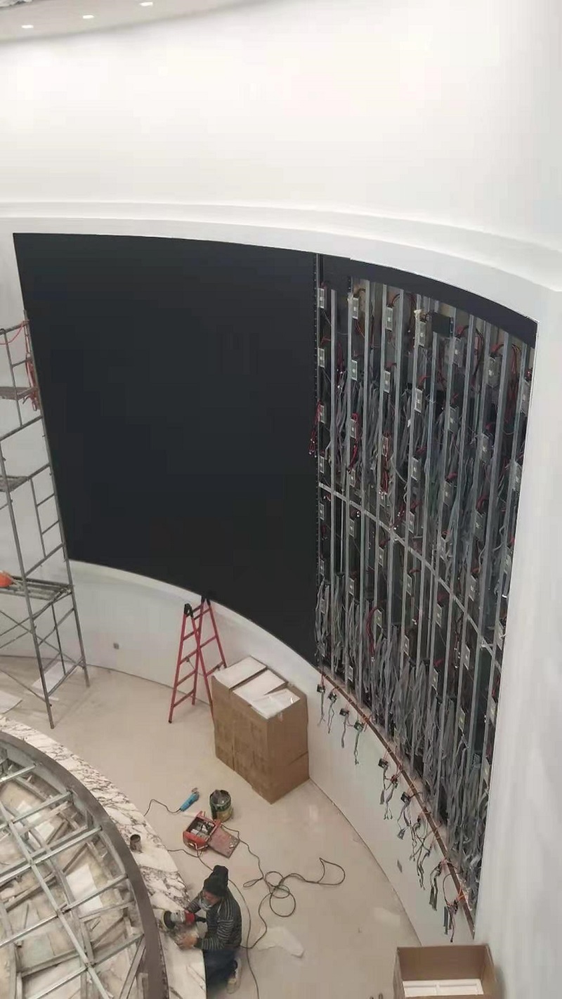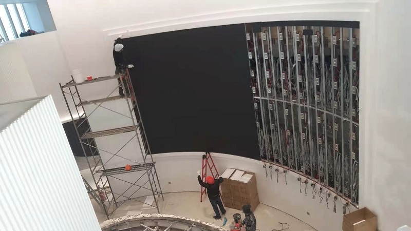 小間距led顯示屏合計45㎡,分辨率高達3840*2160標準4K顯示,我們來看一下施工現場吧!