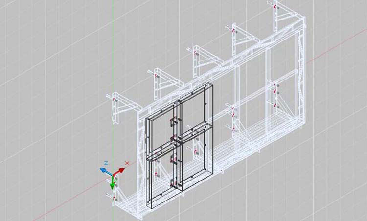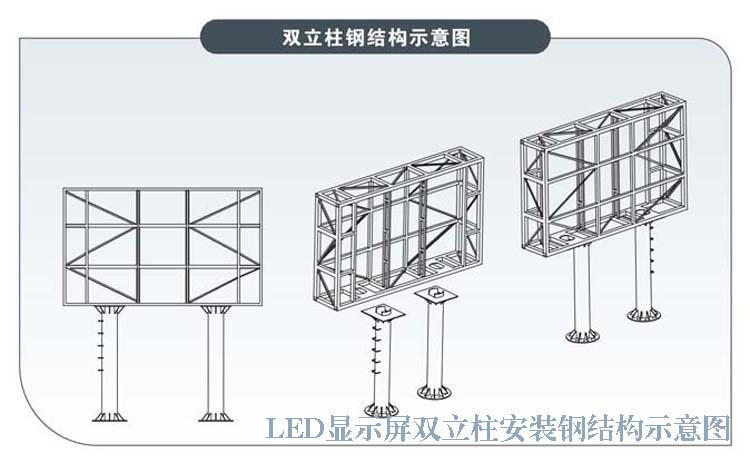 8.安裝鋼結(jié)構(gòu)框架:室內(nèi)P4全彩顯示屏為輕質(zhì)鋼架,在相應(yīng)的梁柱部分采用化學(xué)鉚栓鉚固鋼板作為承托結(jié)構(gòu),顯示屏鋼制框架與鉚固定鋼板連接