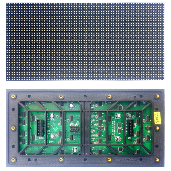 戶外P4全彩led顯示屏采用封裝方式為SMD表貼1921燈珠三合一,主要由紅綠藍三種顏色構成;一平方米有62500個像素點數,每個像素點之間的點間距為4mm;掃描方式為8掃,一平方米的消耗功率大概在500瓦每平方米,新穎面罩設置,顏色混合更均勻,高密度像素使畫質更清晰視角更寬;