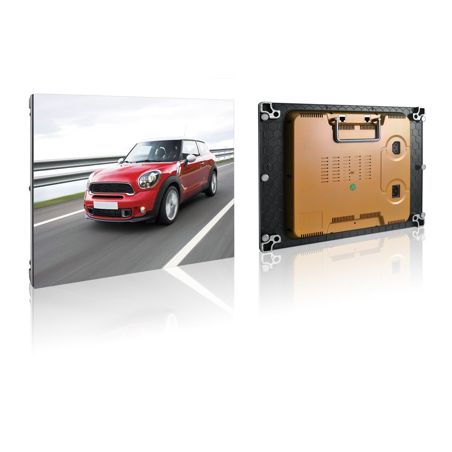 二:一個顯示單元 2.5Kg,最厚小于4cm,最薄處1.5cm,同樣貨柜可裝載更多的產品,運輸成本更低。